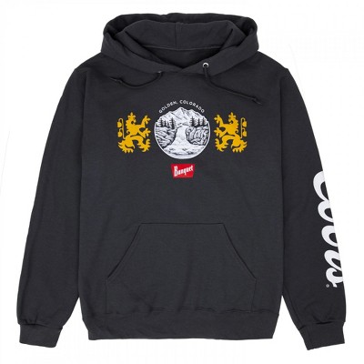 Men's grey Coors hoodie. Made from a cotton/poly blend, this sweatshirt features a "Coors Golden Colorado" logo on the front. Officially licensed.