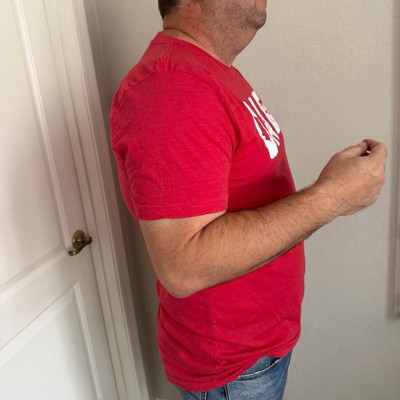 [This review was collected as part of a promotion.] This is a merry and bright red T shirt perfect for Dads. The printed design is really cute with Christmas symbols in each letter. It is a classic style that looks great with jeans and as a layering piece under a jacket. It is perfect for warmer weather Christmas’s and for holiday time. My husband is wearing the size XL and it fitted him really well in the body.