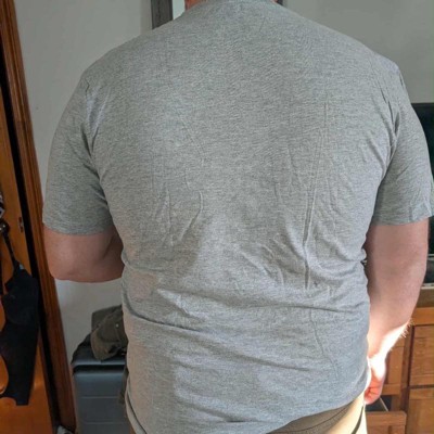 [This review was collected as part of a promotion.] This shirt is really cute for a dad who’s kids love dinosaurs! The realistic Dino is so funny. My son in law is wearing an XL and that’s his typical size so I’d say it’s true to size! It’s comfortable and has a bit of stretch in it. The design doesn’t seem like it would come off but I may launder inside out anyway.