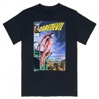 Take the leap of faith with this officially licensed Daredevil Issue #271 Comic Cover T-Shirt. This Marvel black t-shirt is made from cotton and showcases the striking cover art from Daredevil’s wilderness confrontation—designed for die-hard fans of the Man Without Fear’s most unexpected battles.