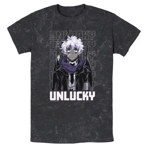 Pandora, Pandora, where are your wings? Pandora, Pandora, where is your officially licensed Devil's Candy apparel? Join Kazu and his super-strong experiment, Pandora, in all their high-school escapades with these styles that can turn any devil into the smallest being! This freakishly cool Men's Devil's Candy Unlucky Milo Graphic T-Shirt features a cool graphic of Milo Pantano with the word: "Unlucky" printed behind him multiple times. School projects have never been crazier, so join the adventure at the Hemlock Heart Academy and be the best devil you can be!