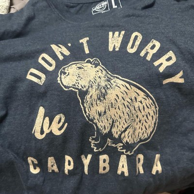 Mens Dont Worry Be Capybara T Shirt Funny Sarcastic Parody Lyrics Tee for Guys - Crazy Dog Men's T Shirt for Animal Lovers Navy S