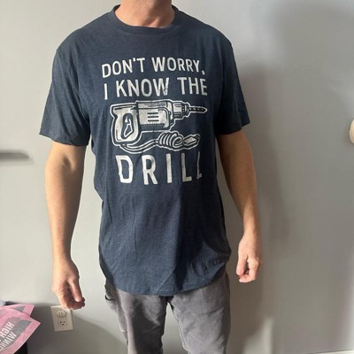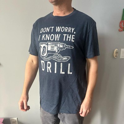 Mens Dont Worry I Know The Drill T Shirt Funny Handy Man Mechanic Tool Tee for Guys - Crazy Dog Men's T Shirt Gift for Dad Navy L