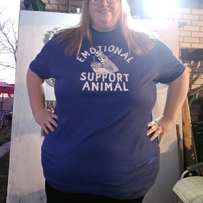Statement Graphic Tee: Features a bold emotional support animal design with a fierce shark illustration; adds humor and personality to casual looks; ideal for beach days, vacations, parties, or relaxing weekends; great conversation starter