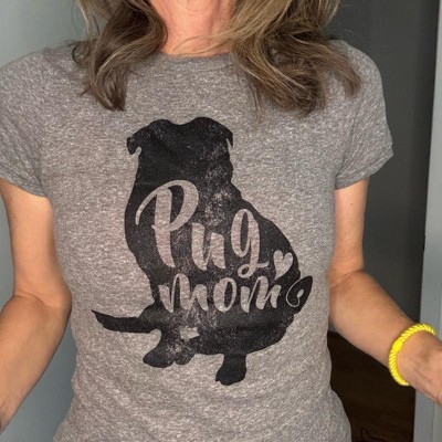 [This review was collected as part of a promotion.] The shirt is adorable and instantly made me smile. The second I opened the package. We have two pugs, so anything pug themed is basically guaranteed to be a hit my house, and this one is especially fitting. The design is playful and Mom themed without being over the top cheesy. It's the kind of tee you can wear casually around the house , or on a quick errand. Material wise, I'm a fan. It has that slub T-shirt texture, which I personally love because it feels soft and broken in, not stiff or plastic key. The fabric has a comfy, lived in look and feel that works well for an everyday T-shirt. The one thing I would strongly call out is the fit. This runs very slim. I'm a true women's small and I ordered a small and it's snug even before washing. It's not unbearable, but it's definitely a fitted look.
