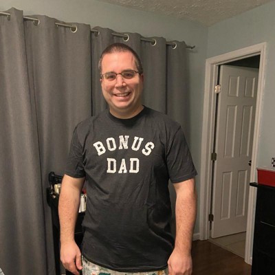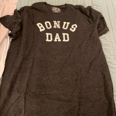 Meaningful Stepdad Shirt: Features bold collegiate-style “Bonus Dad” text in vintage white print; a funny yet heartfelt way to recognize the man who stepped up and became a true father figure in a blended or growing family