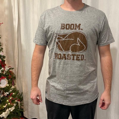 Mens Funny T Shirts Boom Roasted Sarcastic Thanksgiving Dinner Turkey Graphic Tee for Men - Crazy Dog Men's T Shirt for Thanksgiving Light Grey 4XL
