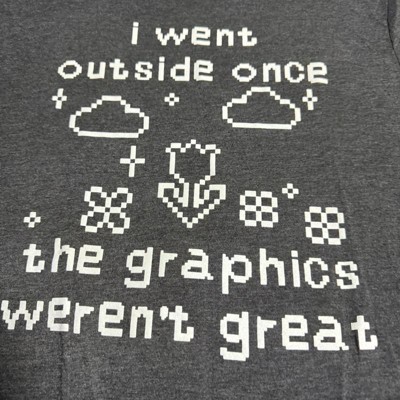• Funny Pixel Art Design: Retro pixel graphics meet sarcastic wit with this “I Went Outside Once, The Graphics Weren’t Great” tee; the perfect ironic statement for gamers who prefer pixels over nature, comfort over campfires