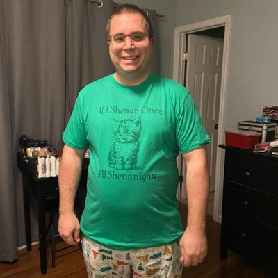 - Funny & Sarcastic Design: Featuring “If I Shenan Once, I’ll Shenanigan” with a cute kitten graphic, this novelty T-shirt adds humor to any outfit; ideal for men who love jokes, puns, and sarcasm