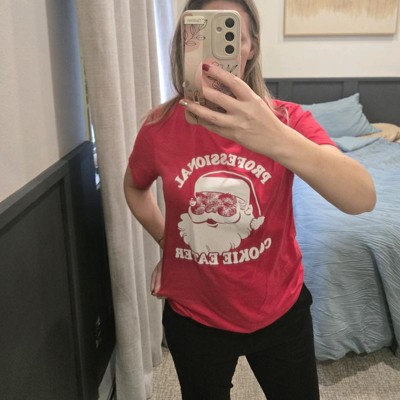 Mens Funny T Shirts Professional Cookie Eater Sarcastic Christmas Graphic Santa Tee for Men - Crazy Dog Men's T Shirt Gift For Christmas Red S