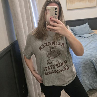 [This review was collected as part of a promotion.] This looks like an old high school gym uniform t-shirt but it's really an updated version of a holiday shirt. This is listed as a men's t-shirt although I think it could work for either gender. I bought this in a men's extra large for my husband and I normally wear a women's medium so if I wanted an oversized baggy shirt I could wear this as well.