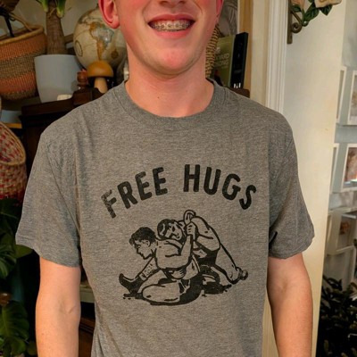 Mens Funny T Shirts Free Hugs Sarcastic Wrestling Graphic Novelty Tee for Men - Crazy Dog Men's T Shirt With Sarcastic Sayings Dark Grey S