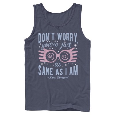 Get ready to spend a magical year at the greatest school with all your favorite witches and wizards, learn spells, study wizardry, defeat He Who Shall Not Be Named, and uncover the mysteries surrounding the magical school for wizards! This officially licensed Unisex Harry Potter Luna You’re Just As Sane as I Am Long Sleeve T-Shirt features Luna Lovegood's iconic Spectrespecs and her famous quote: "Don't worry, you're just as sane as I am" printed in distressed blue lettering across the front. And just remember, the spell is Wing-gar-dium Levi-o-sa and NOT Wingardium Leviosa!