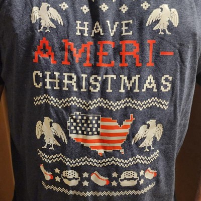 Mens Have Ameri-Christmas T Shirt Funny USA Patriotic Tee - Crazy Dog Men's T Shirt Gift For Christmas Navy S