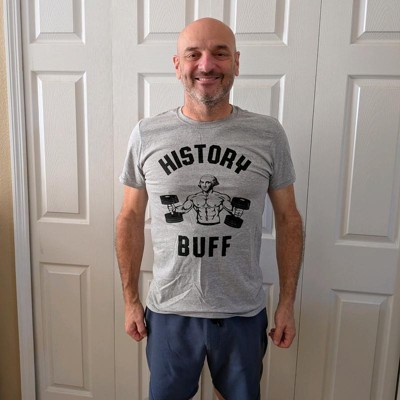 Patriotic Humor Shirt; George Gains: Flex your funny bone with this “History Buff” tee featuring George Washington lifting weights; perfect for patriotic history lovers with a gym habit and a great sense of humor.