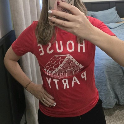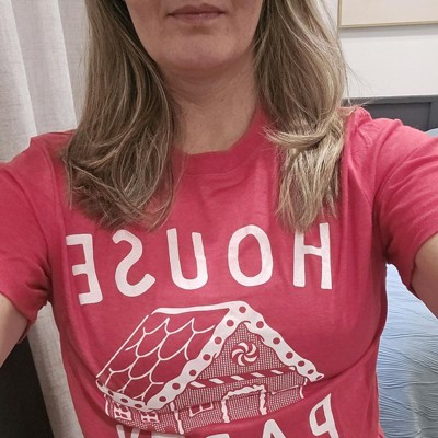[This review was collected as part of a promotion.] This is a funny Christmas t-shirt featuring a gingerbread house and the graphics saying house party I have never seen another one like this. This is listed as a men's t-shirt but really it can be unisex sizing. I normally wear a woman's medium and I ordered this in a men's small and it fits true to size. this would be a great t-shirt to wear when you're making your gingerbread house