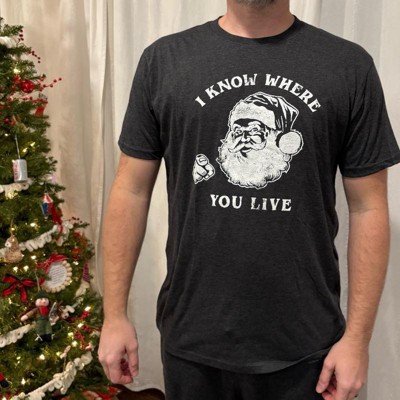 Mens I Know Where You Live T Shirt Funny Christmas Santa Claus Sarcastic Graphic Tee - Crazy Dog Men's T Shirt Gift For Christmas - 1 of 4