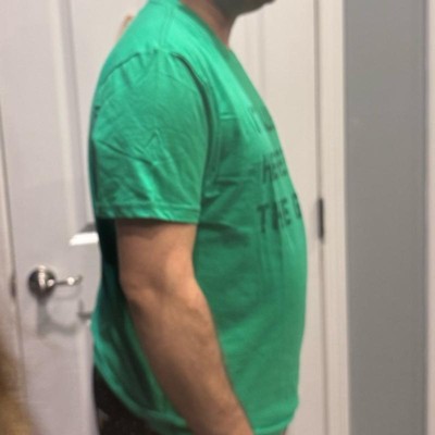[This review was collected as part of a promotion.] My husband is pictured here wearing a size extra large, which is a typical true to size fit overall, I highly recommend this shirt because it is well-made and got a ton of laughs throughout the holiday season. It is high-quality and overall funny. The graphite tea was printed well in the lettering was not peeling. This will be a laugh for seasons to come paired with Christmas jammies or a pair of jeans for dinner out.