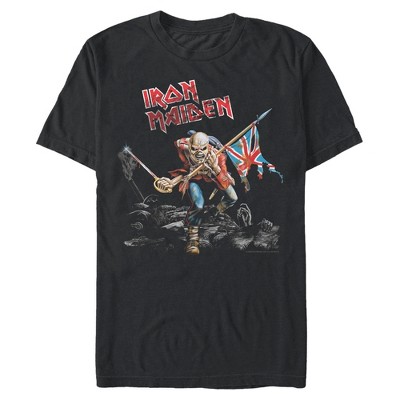 • Rock this new men's t-shirt that is perfect for concerts, casual hangouts, and more! Featuring Eddie from "The Trooper" artwork, with a sword raised, Union Jack in hand, and rebellion in his eyes, along with the band's official logo across the front.