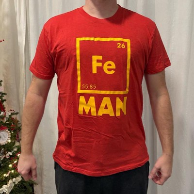 Fe is Iron, and you are a man - so now you can be an FeMan - Iron + Guy! Raise up your glasses against evil forces and slip on the ole Fe today. Have a little iron in your veins? This funny Chemistry shirt is perfect for you or the other comic book, movie or science buffs in your life! You will certainly make a statement in this nerdy tee at conventions, in school or at a midnight showing. You will also love how comfortable this funny science tshirt is. Know someone who loves to quote comedy movies? Click add to cart to pick up one of our awesome t-shirts, cozy hoodies, or fun socks that makes a perfect gift for you and your movie buff friend. Finally a quirky, comfortable tee to celebrate your 90s nostalgia, favorite comedy movie or tv show you love to binge. At Crazy Dog T Shirt, we have all the funny, geeky tees, nerdy ties, and hilariously sarcastic hoodies to showcase all your love for math and science. When science is life, literally, show off your love and intimate understanding of the natural world. Look no further for clever science puns and witty sarcasm math t-shirts guaranteed to get a laugh! Unique and hilarious, Crazy Dog funny shirts for men and shirts with sayings make great gifts for family, friends and coworkers. Our men's novelty t-shirts are perfect for the witty and sarcastic nerd, geek, or ultra cool guy who's looking to strut his stuff in comfort and style. Our shirts with funny sayings are made with a soft spun poly cotton blend. Comfortable and charming, our funny t shirts for men will quickly become his new favorite shirt. Available in a wide range of colors, sizes and styles, our mens funny t shirts pair well with his favorite pair of jeans, shorts or sweatpants. Find the eye catching funny shirt your dad, brother, husband or boyfriend will love. Our funny dad shirt, sarcastic tshirts for men and funny gifts for brother are great for birthdays, holidays and just because