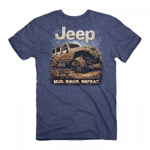 Officially licensed Jeep Mud. Rinse. Repeat. Front and Back Print T-Shirt. This blue "Jeep" t-shirt is made from cotton and features a fun "Jeep - Mud. Rinse. Repeat." logo design printed on the front and back.