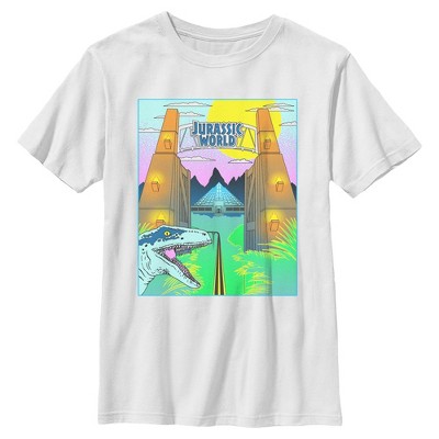 • Strut your stuff with this stylish new men's graphic t-shirt that is perfect for every occasion! Featuring a retro-style graphic of the theme park Jurassic World with a dinosaur on the front.