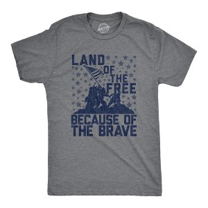 Mens Land of The Free Because of The Brave T Shirt Patriotic Memorial Day 4th Of July Tee - Crazy Dog Men's T Shirt For Fourth Of July Dark Grey M