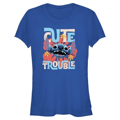 • Because Ohana isn't complete without this stylish new everyday men's t-shirt that is perfect for every occasion! Featuring Stitch smiling surrounded by flowers and the phrase "Cute Trouble" printed across the front.