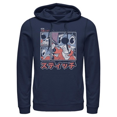Mens Lilo & Stitch Surfing Stitch Lightweight Hoodie - Navy Blue - 2X Large