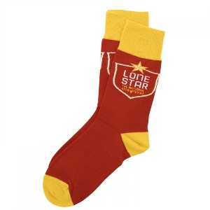 Officially licensed Lone Star Classic Logo Crew Socks. These red and yellow "Lone Star" Crew Socks are made from a cotton/poly blend and features the classic "Lone Star" logo design.