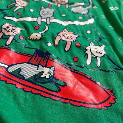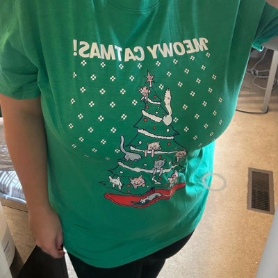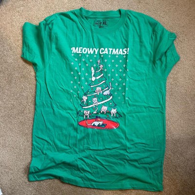 Mens Meowy Christmas Funny Cat Dad Ugly Sweater T shirt Adult Humor Sarcastic - Crazy Dog Men's T Shirt Gift For Christmas Green S