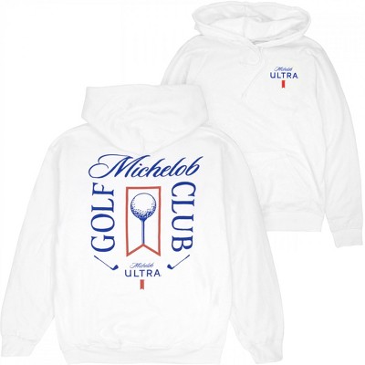 Officially licensed Michelob Golf Club Front and Back Sweatshirt Hoodie. This "Michelob" Sweatshirt Hoodie is made from a comfy cotton/poly blend and features the classic "Michelob Golf Club" logo design printed on the front and back.