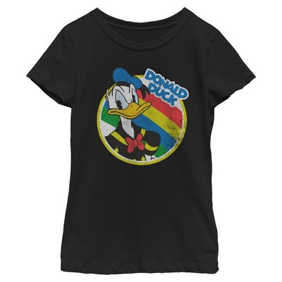 Waddle into timeless style with this officially licensed men's black long sleeve t-shirt featuring Donald Duck looking his feisty best against a bold, distressed rainbow-striped background. With vintage flair and classic cartoon attitude, this comfy long sleeve tee is perfect for Disney lovers who know that sass never goes out of style. Whether you're keeping cozy on cooler days or just want to channel some animated energy, this Donald Duck shirt delivers major throwback vibes. It's a quacking good way to show off your love for Mickey & Friends with every wear!
