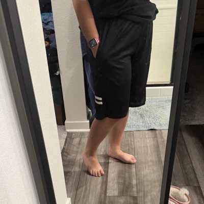 [This review was collected as part of a promotion.] These are great gym shorts and very light and breathable for hot weather or sports. They are a little see through because of that though. They are a good length past the knees and are comfortable and fitted at the waist. He typically wears a 34/33 and XL short and these fit like typical mesh shorts.. The color stripe on the side is a nice dash of style and not too bold. They did slightly shrink in the wash so if you like a baggier short then size up. I received an incentive to write this review.