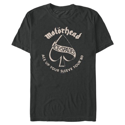 Unleash your inner rock god with officially licensed Motorhead apparel—because nothing says “born to lose, live to win” like repping the loudest band of all time! This Men's Ace Up Your Sleeve Tour 80 Graphic T-Shirt features a black spade encircled by the band's iconic logo and the phrase: "Ace Up Your Sleeve Tour '80" across the front. Whether you're moshing or just looking effortlessly cool, this new Motorhead apparel makes one thing clear: you don’t follow trends, you follow the roar. Rock hard, dress harder today!