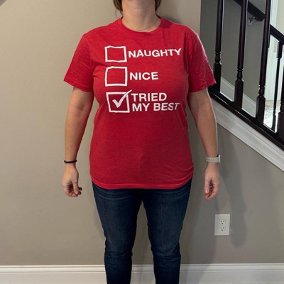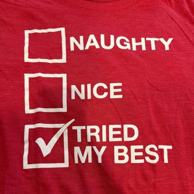 Mens Naughty List Nice List Tried My Best Funny Graphic Santa Christmas T shirt - Crazy Dog Men's T Shirt Gift For Christmas Red L