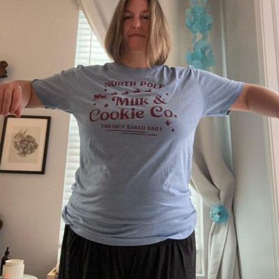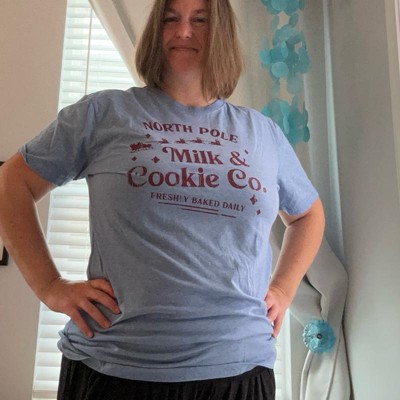 Mens North Pole Milk and Cookie Co T Shirt Funny Xmas Bakery Shop Joke Tee for Guys - Crazy Dog Men's T Shirt Gift For Christmas Light Blue S