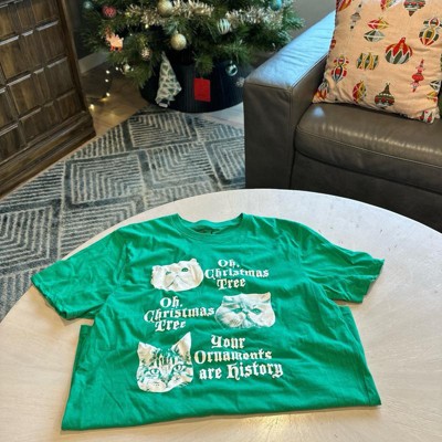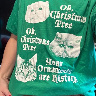 Mens Oh Christmas Tree Your Ornaments Are History T Shirt Funny Cat Holiday Tee for Guys - Crazy Dog Men's T Shirt Gift For Christmas Green S