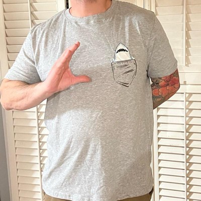 Mens Pocket Shark Funny T shirts Printed Graphic Jaws Cool Novelty T shirt - Crazy Dog Men's T Shirt For Summer Light Grey S