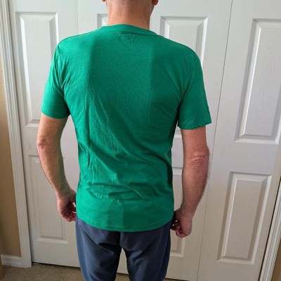 [This review was collected as part of a promotion.] My husband really likes this t-shirt. The green color is very vibrant and the material is very soft and lightweight. He said it is so comfortable that it could even be worn for sleeping or to the gym. He generally wears a size medium in shirts and measures 40 inches in the chest and the medium size of this shirt fits perfectly.