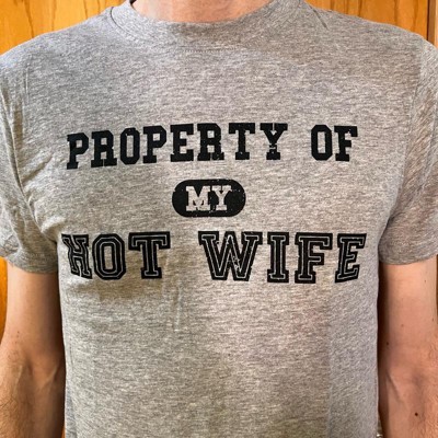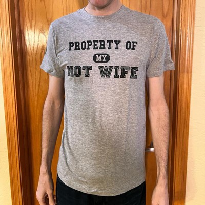 Mens Property of My Hot Wife Funny Wedding Father's Day Anniversary T shirt - Crazy Dog Men's T Shirt Gift for Dad Light Grey M