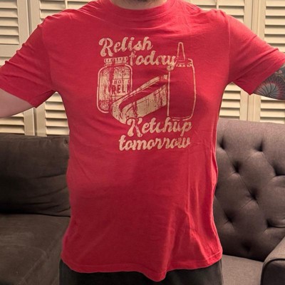 Mens Relish Today Ketchup Tomorrow T Shirt Funny Hot Dog Condiments Graphic Tee - Crazy Dog Men's T Shirt For Foodies Red S