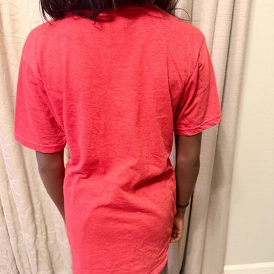 [This review was collected as part of a promotion.] My daughter is 10yr old, is wearing a size Small in women’s. She’s 5ft 1 and 106 lbs. She is in to the baggy fit and this one fits perfect for her. The shirt is women’s cut so it’s not overly baggy. The cut of the shirt is very flattering and feminine. The shirt is made of a soft cotton fabric that isn’t too thick or thin so it’s perfect for us who live in warmer climates.