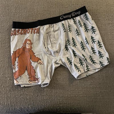 Mens Sascrotch Boxer Briefs Funny Saying Big Foot Joke Graphic Novelty Underwear for Guys - Crazy Dog Boxer Briefs Gift for Dad Grey M