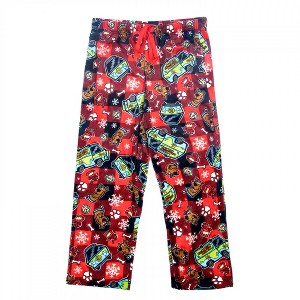 Officially licensed Scooby-Doo Winter Mystery Machine Plaid Men's Sleep Pants. Made from cozy polyester fleece, these festive red and black "Scooby-Doo" sleep pants feature vibrant holiday-themed "Winter Mystery Machine" character print and drawstring waist.