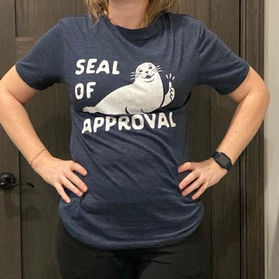 Mens Seal Of Approval T Shirt Funny Pun Graphic Novelty Sea Animal Graphic Tee - Crazy Dog Men's T Shirt for Animal Lovers Navy M