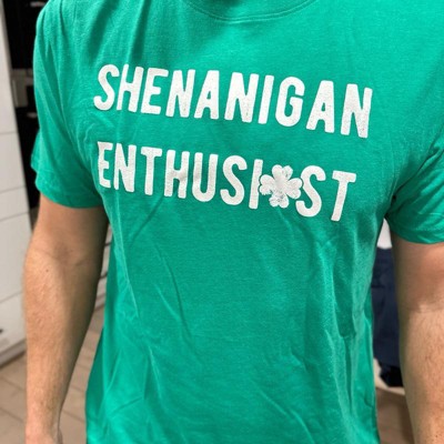 Mens Shenanigan Enthusiast T Shirt Funny St Patricks Day Party Novelty Tee - Crazy Dog Men's T Shirt for Saint Patrick's Day Green S