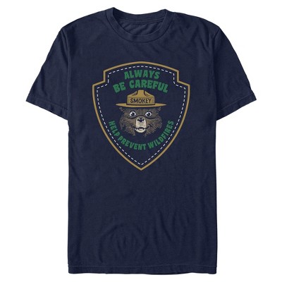 Mens Smokey Bear Always Be Careful Badge T Shirt - Navy Blue - 2X Large
