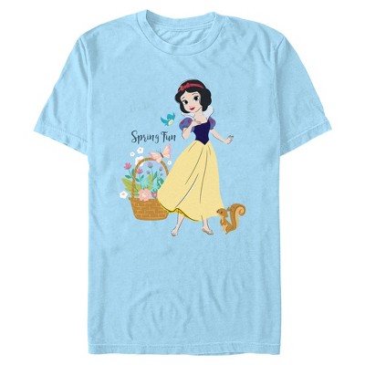 • Heigh-ho your way into style and make every day a whistle with this new men's t-shirt! Featuring Snow White posing cutely alongside a basket filled with flowers, butterflies, birds, and squirrels, and the cheerful phrase: "Spring Fun" printed across the front.