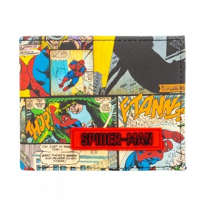 Swing in for the check in style with this officially licensed Spider-Man Comic Panel Collage Bifold Wallet. Made from faux leather, this colorful Marvel wallet features an allover collage of classic Spider-Man comic panels, with interior card slots and a bill compartment for heroic everyday carry.